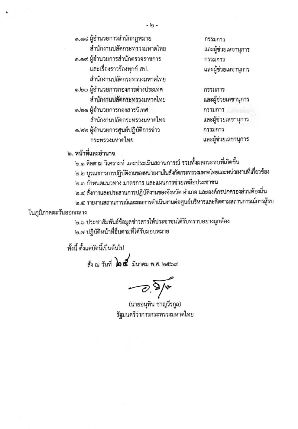 “อนุทิน” เซ็นจัดตั้ง ศบก.มหาดไทย “อรรษิษฐ์” นั่ง ผอ.ศูนย์ฯ รับมือวิกฤตตะวันออกกลาง