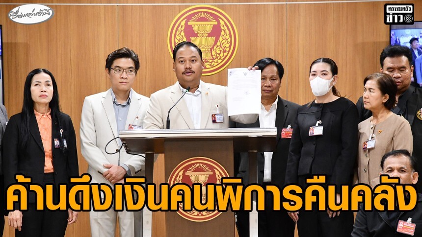 นายณัฐชา บุญไชยอินสวัสดิ์ สส.บัญชีรายชื่อ พรรคประชาชน พร้อมด้วย นายชูศักดิ์ จันทยานนท์ เลขาธิการสมาคมสภาคนพิการทุกประเภทแห่งประเทศไทย แถลงกรณีรัฐบาลมีนโยบายจะดึงเงินจากกองทุนส่งเสริมและพัฒนาคุณภาพชีวิตคนพิการ กลับคืนสู่คลังจำนวน 2,800 ล้านบาท