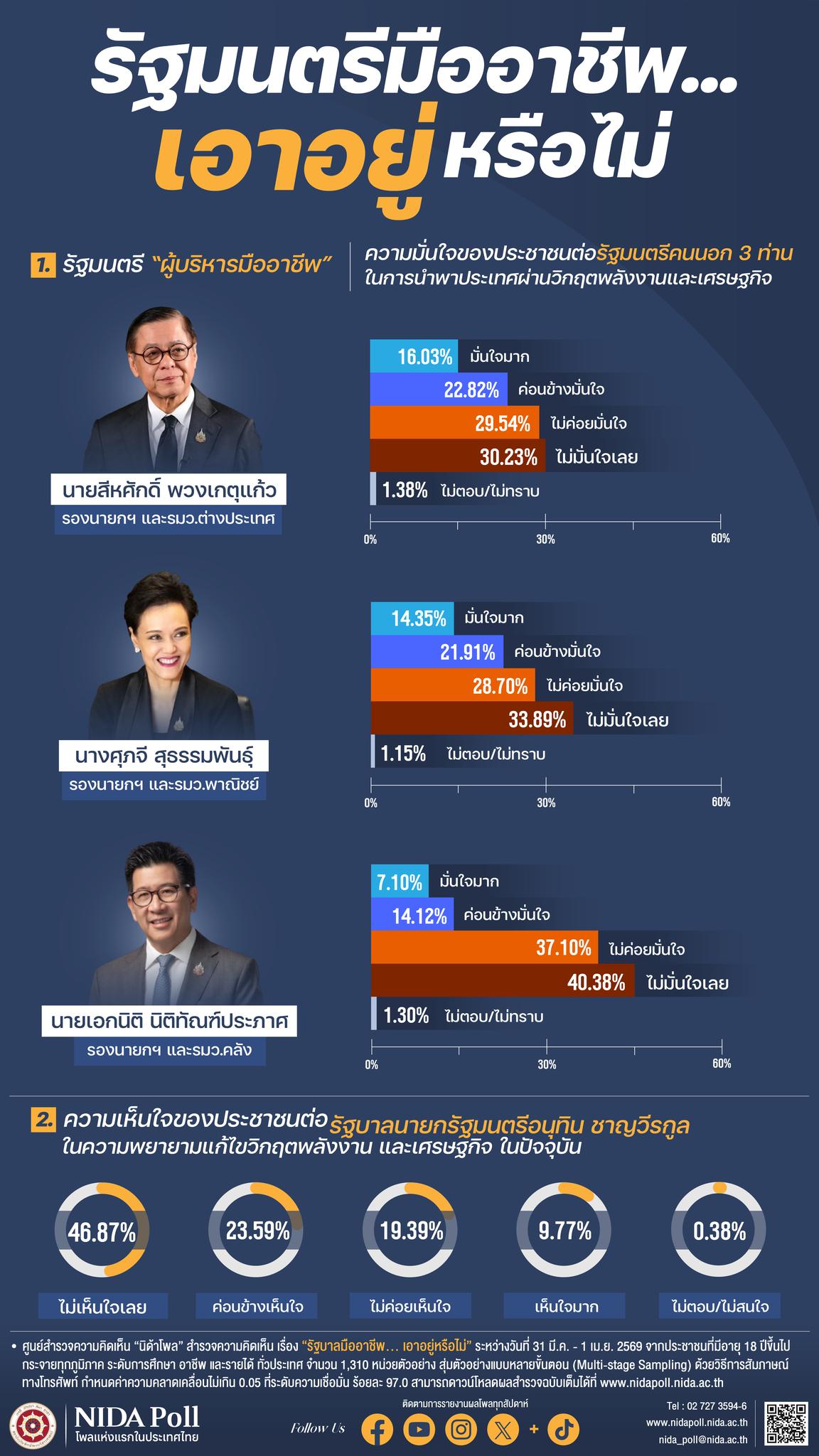 นิด้าโพล ชี้ประชาชนไม่มั่นใจ 3 รัฐมนตรีคนนอก แก้วิกฤตพลังงานและเศรษฐกิจ