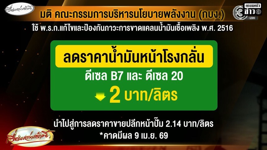เอกนัฏ เผย กบง.มีมติลดราคาหน้าโรงกลั่น ดีเซล B7-B20 ลง 2 บาท รอประกาศในราชกิจจาฯตามขั้นตอน คาดเรียบร้อยวันนี้ (8 เม.ย.) ก่อนหารือลดราคาหน้าปั๊มต่อเนื่องทันที เผยโรงกลั่นมีทั้งยินดีให้ความร่วมมือ-ไม่ให้ความร่วมมือ ปัดตอบโรงกลั่นไหนบ้าง ย้ำทุกแห่งมีหน้าที่ปฏิบัติตาม ฝากประชาชนรอฟังคำชี้แจงจากโรงกลั่นเอง ระบุวันนี้ขอตั้งไว้ 2 บาทก่อน คาดอนาคตอาจปรับลดมากกว่านี้