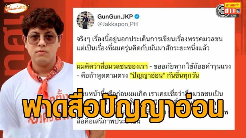 แท็กที่เกี่ยวข้อง พรรคประชาชน ,จักรพลผลละออ ,สื่อไทยปัญญาอ่อน