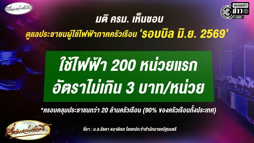 เลือกตั้งและการเมืองครม.มีมติเห็นชอบ ค่าไฟ 200 หน่วยแรก ไม่เกิน 3 บาท เริ่มรอบบิล มิ.ย.นี้8 ชั่วโมงที่แล้ว9 viewsShareครม.มีมติเห็นชอบ ค่าไฟ 200 หน่วยแรก ไม่เกิน 3 บาท เริ่มรอบบิล มิ.ย.นี้https://youtu.be/MqOXe3Rvqr4แท็กที่เกี่ยวข้อง ค่าไฟ