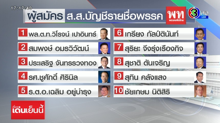 เปิดรายชื่อผู้สมัครส.ส.ของแต่ละพรรคการเมือง