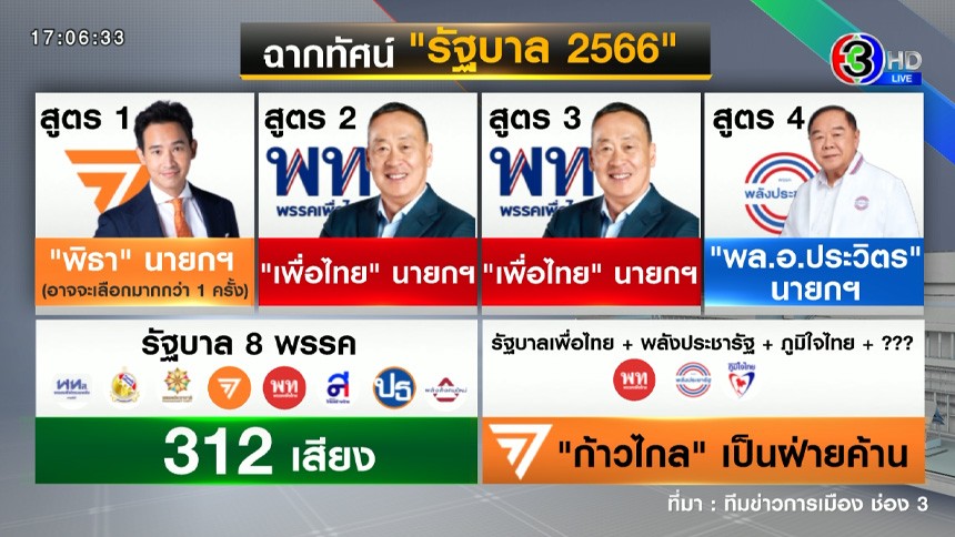 1. สูตร "พิธา" นายกฯ (อาจจะเลือกมากกว่า 1 ครั้ง) - รัฐบาล 8 พรรค 312 เสียง