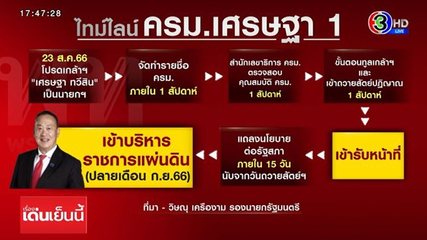 แท็กที่เกี่ยวข้อง วิษณุเครืองาม ,เศรษฐาทวีสิน ,รัฐบาล ,รัฐสภา ,กางไทม์ไลน์ ,ครม.ใหม่