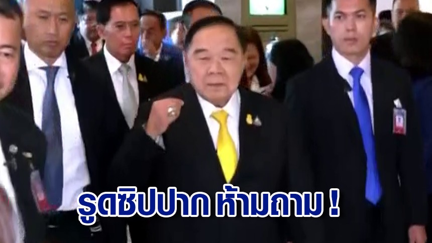 'บิ๊กป้อม' ทำท่ารูดซิปปาก ห้ามถามการเมือง ปัดตอบเรื่อง 'เศรษฐา' ชวนทานข้าว