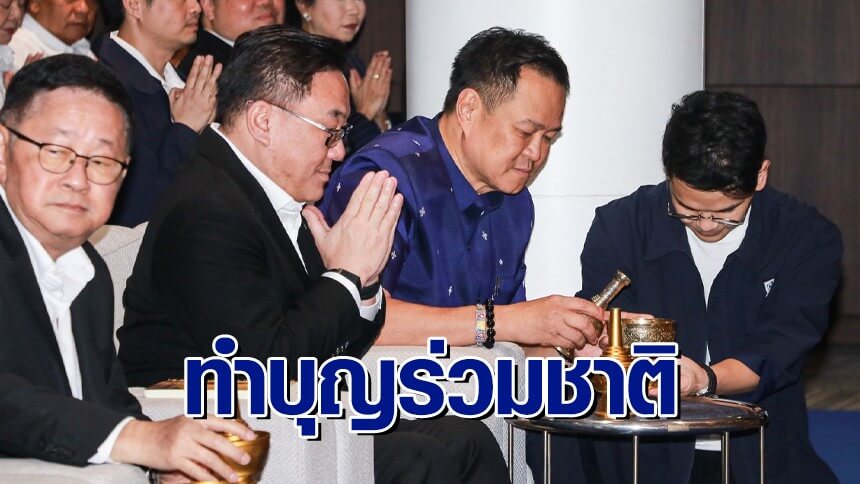 นายกฯ นำทีมทำบุญภูมิใจไทย ก้าวสู่ปีที่ 18 จุลพันธ์ร่วมทำบุญร่วมชาติชื่นมื่น ด้านพิพัฒน์ ยันสบายดี หลัง ปชช.ถามหา ก่อนจิบกาแฟคุยนายกฯ กระแสแบนปั๊ม PT ยันลาออกมา 23 ปีแล้ว ขออย่าถามเยอะ ขณะที่พรรคประชาธิปัตย์ ทำบุญครบรอบ 80 ปี ในวันเดียวกัน ทางภูมิใจไทยส่งศิษย์เก่าร่วมแสดงความยินดี