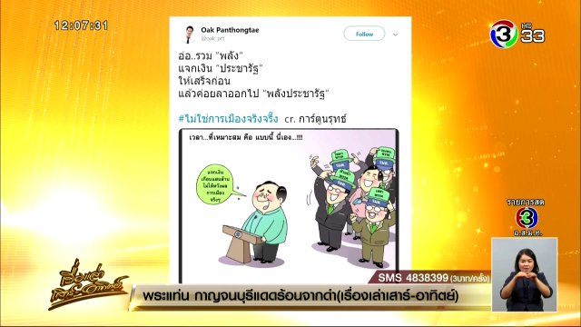 นายพานทองแท้ ชินวัตร หรือโอ๊ค บุตรชายนายทักษิณ ชินวัตร ได้ทวิตข้อความ พร้อมแนบภาพการ์ตูน ระบุว่า