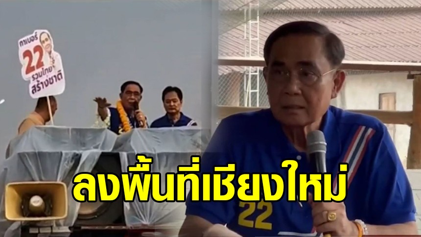 'บิ๊กตู่' นั่งเครื่องแอ่วเชียงใหม่ นำทัพ รทสช.หาเสียงคึกคัก ก่อนนั่งถกปัญหาที่ดินแม่แจ่ม