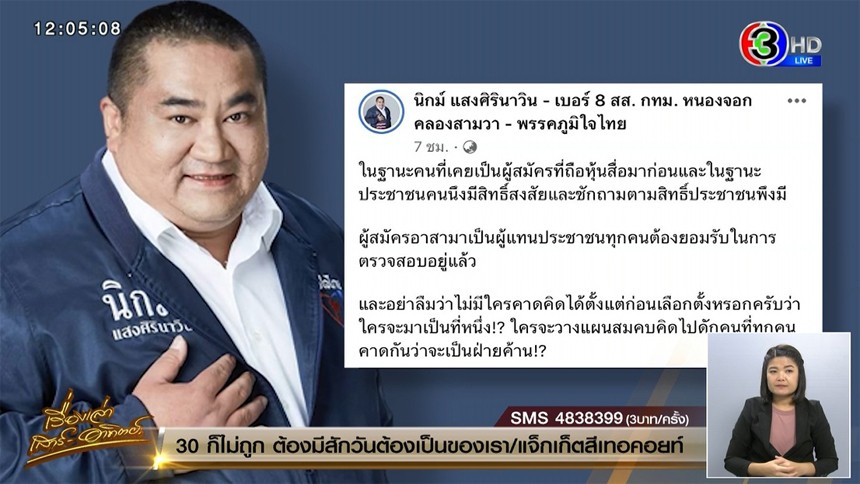 'นิกม์' แจงมีสิทธิสงสัย-ซักถาม ในฐานะ ปชช. ย้ำ ผู้อาสาเป็นผู้แทนฯ ต้องยอมรับการตรวจสอบ