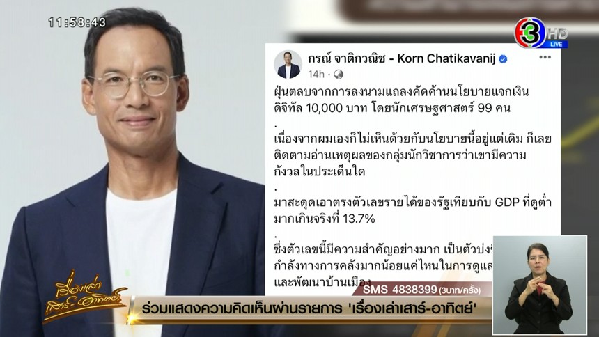 “ฝุ่นตลบจากการลงนามแถลงคัดค้านนโยบายแจกเงินดิจิทัล 10,000 บาท โดยนักเศรษฐศาสตร์ 99 คน