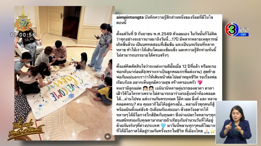 เอม พินทองทา โพสต์ซึ้งบันทึกความรู้สึกครอบครัวชินวัตร รอวันนี้มา 17 ปี ต้อนรับ ตาทักษิณ กลับบ้านมาใช้ชีวิตกับหลาน ๆ ครั้งแรกที่เมืองไทย