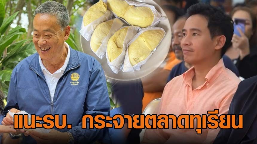 'เศรษฐา' โปรโมททุเรียนทองผาภูมิ 'พิธา' แนะรบ. กระจายตลาดทุเรียน-เพิ่มมูลค่า