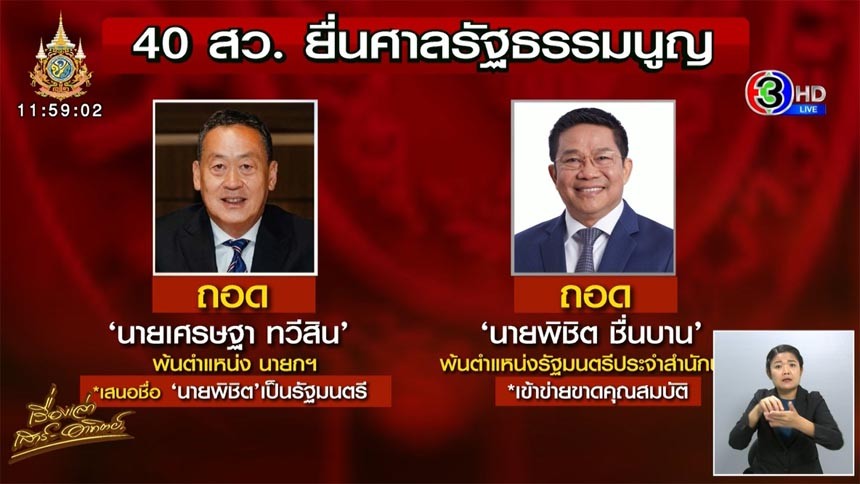 40 สว.ยื่นศาล รธน. ถอด 'เศรษฐา-พิชิต' พ้นตำแหน่ง ชี้เข้าข่ายขาดคุณสมบัติ