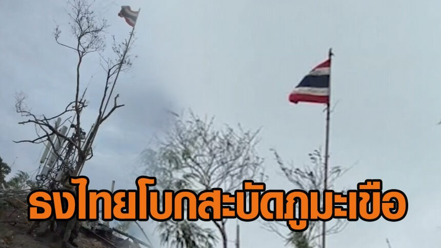 ทหารไทยร้องเพลงชาติไทย เชิญธงชาติขึ้นสู่ยอดเสา หลังยึดภูมะเขือ - เปิดภาพคลังอาวุธกัมพูชา - นายพลเขมรถูกกระสุนปืนใหญ่เสียชีวิต