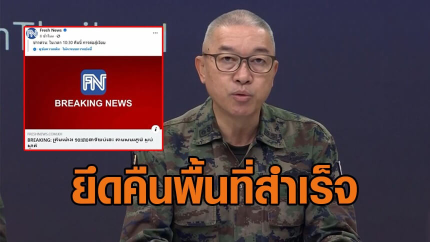4 ทุ่มไม่หยุดยิง แต่สื่อกัมพูชารายงานอ้างแนวรบสงบเงียบ ขณะที่ฝั่งไทยเผยยังสู้รบดุเดือด ล่าสุด กองทัพเรือยึดคืนพื้นที่บ้าน 3 หลัง จ.ตราด ปักธงชาติไทย ยืนยันอธิปไตยของไทยได้สำเร็จ