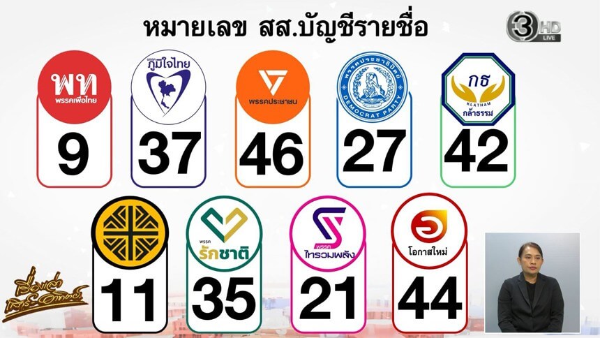 แท็กที่เกี่ยวข้อง เบอร์พรรคการเมือง ,เลือกตั้ง69