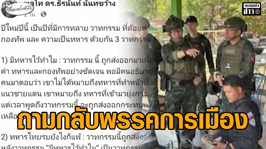 เจ้ากรมข่าวทหารบก ชี้ 3 วาทกรรมด้อยค่ากองทัพ-ความเป็นทหาร ถูกทลายลงแล้ว พร้อมกับมีคำตอบที่ชัดเจนในสถานการณ์สู้รบไทย-กัมพูชา 2 ครั้ง ซัดแรงถามกลับพรรคการเมืองดัง “เราจะมีพรรคการเมืองนี้ไว้ทำไม”