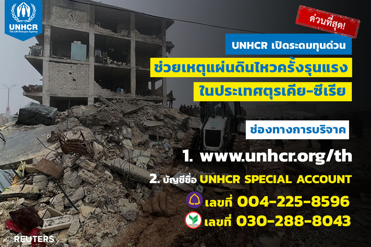 UNHCR เปิดระดมทุนช่วยเหลือเด็กและครอบครัว จากเหตุการณ์แผ่นดินไหวรุนแรงในตุรเคียและซีเรีย