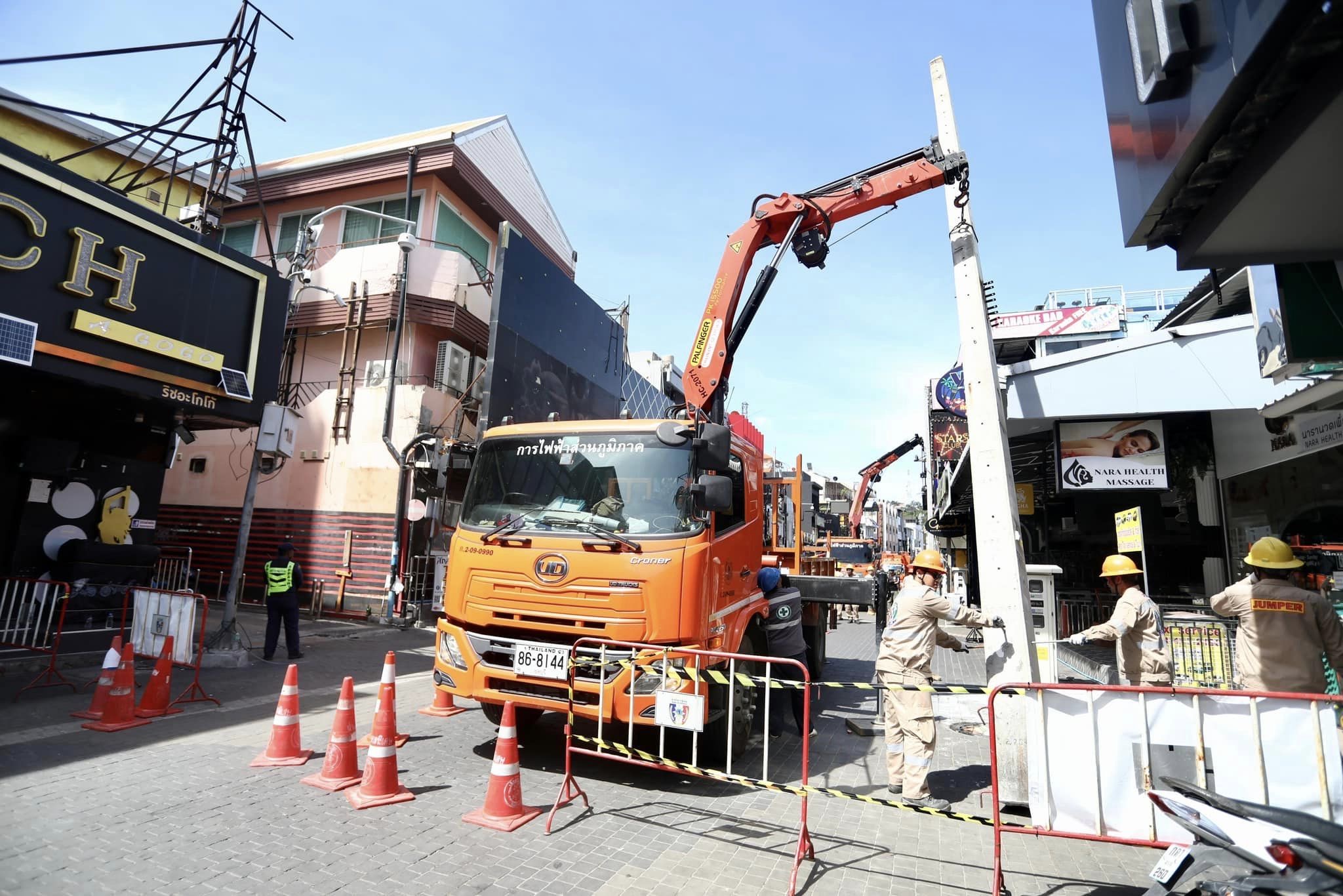 สำหรับการรื้อถอนเสาไฟฟ้า สายไฟฟ้าและสายสื่อสาร บริเวณ Walking Street เป็น 1 ใน 9 เส้นทาง ภายใต้โครงการพัฒนาระบบไฟฟ้าในเมืองใหญ่ ระยะที่ 1 (เมืองพัทยา) เพื่อความเป็นระเบียบเรียบร้อย เกิดภาพลักษณ์ที่ดีและภูมิทัศน์ที่สวยงาม ระยะทางประมาณ 1,800 เมตร เริ่มดำเนินโครงการตั้งแต่ปี 2560 และสิ้นสุดในปี 2564 รวมระยะเวลา 5 ปี โดยเป็นการดำเนินการก่อสร้างระบบจําหน่ายไฟฟ้าเป็นเคเบิลใต้ดิน และย้ายระบบจำหน่ายเหนือดินลงใต้ดิน เพื่อจ่ายไฟให้กับผู้ใช้ไฟฟ้าในเขตพื้นที่เมืองพัทยา เพื่อความเป็นระเบียบเรียบร้อย เกิดภาพลักษณ์ที่ดีและภูมิทัศน์ที่สวยงาม สมกับเป็นอีกหนึ่งแลนด์มาร์คสำคัญของเมืองท่องเที่ยวระดับโลก