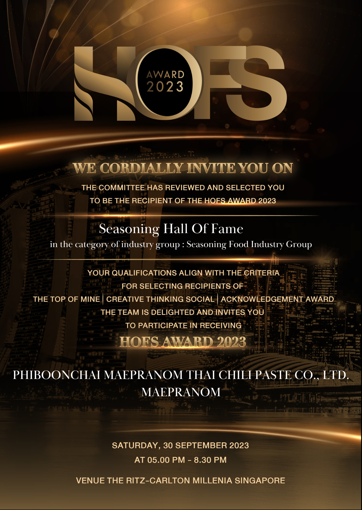 ซึ่งการที่ผลิตภัณฑ์ตราแม่ประนอม ได้รับรางวัล HOFS Award 2023 ในครั้งนี้ ถือเป็นความภาคภูมิใจอย่างยิ่ง ที่หน่วยงานต่างประเทศเห็นความสำคัญของผลิตภัณฑ์อาหารไทย ที่เกิดจากภูมิปัญญาไทยอย่างแท้จริง