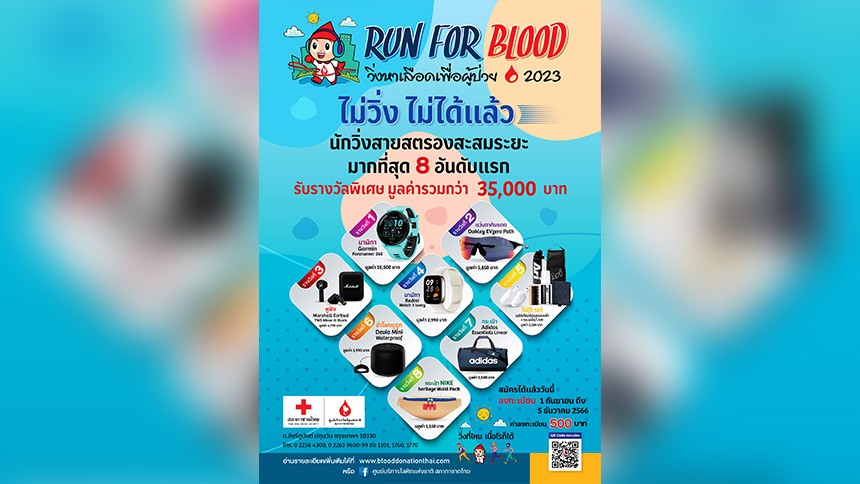 เปิดตัวรางวัลพิเศษ '8 ไอเทมคู่ใจนักวิ่งสายสตรอง' กับโครงการ RUN FOR BLOOD วิ่งหาเลือดเพื่อผู้ป่วย 2023