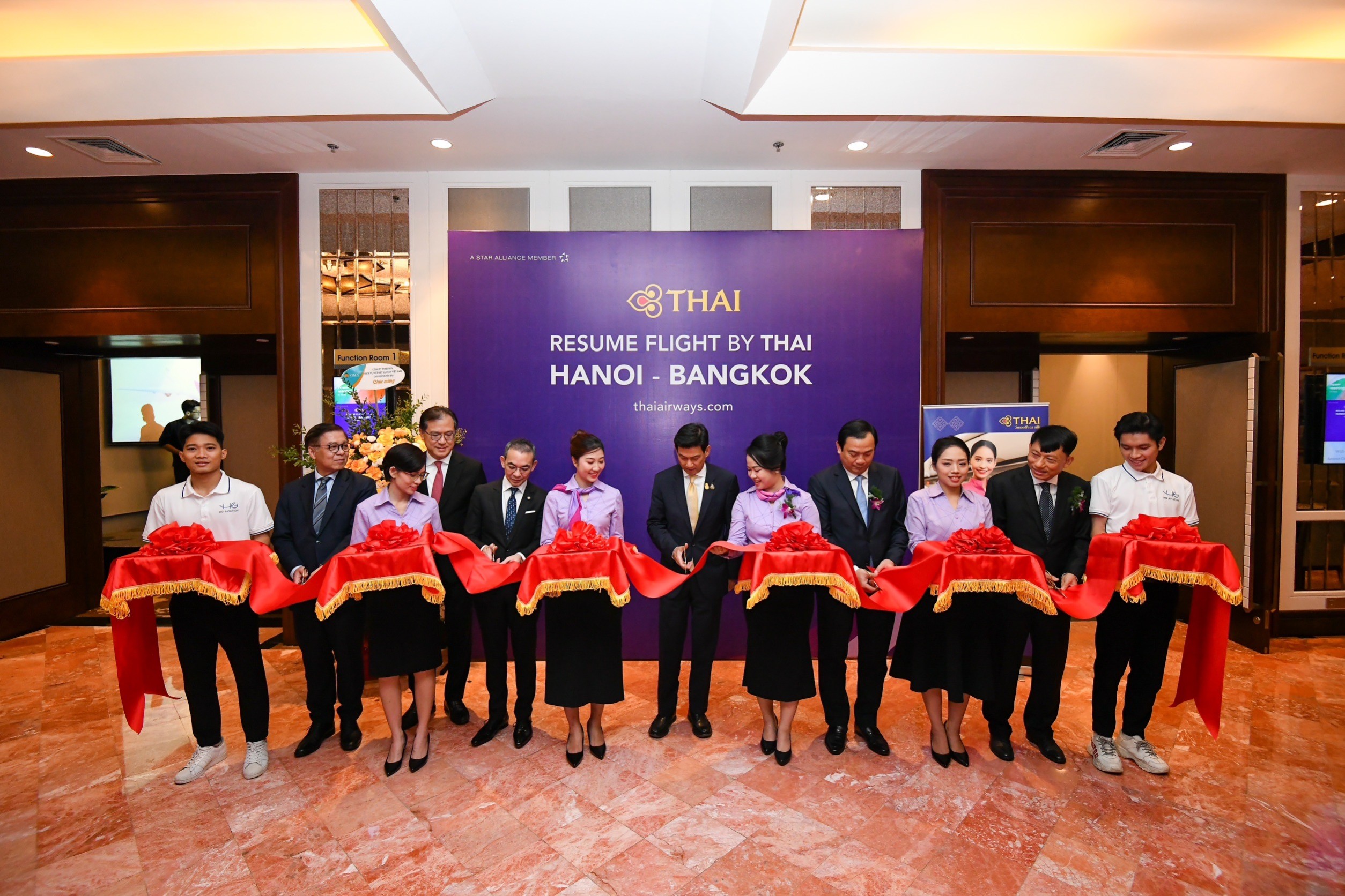ผู้สื่อข่าวรายงานว่าการเปิดฉลองเส้นทางการบินไทย-เวียดนาม ครั้งนี้ มี นาย Nguyen Trung Khanh ผู้ว่าการการท่องเที่ยวแห่งประเทศเวียดนาม (Vietnam National Administration of Tourism - VNAT) ร่วมแสดงความยินดีกับการบินไทยด้วย