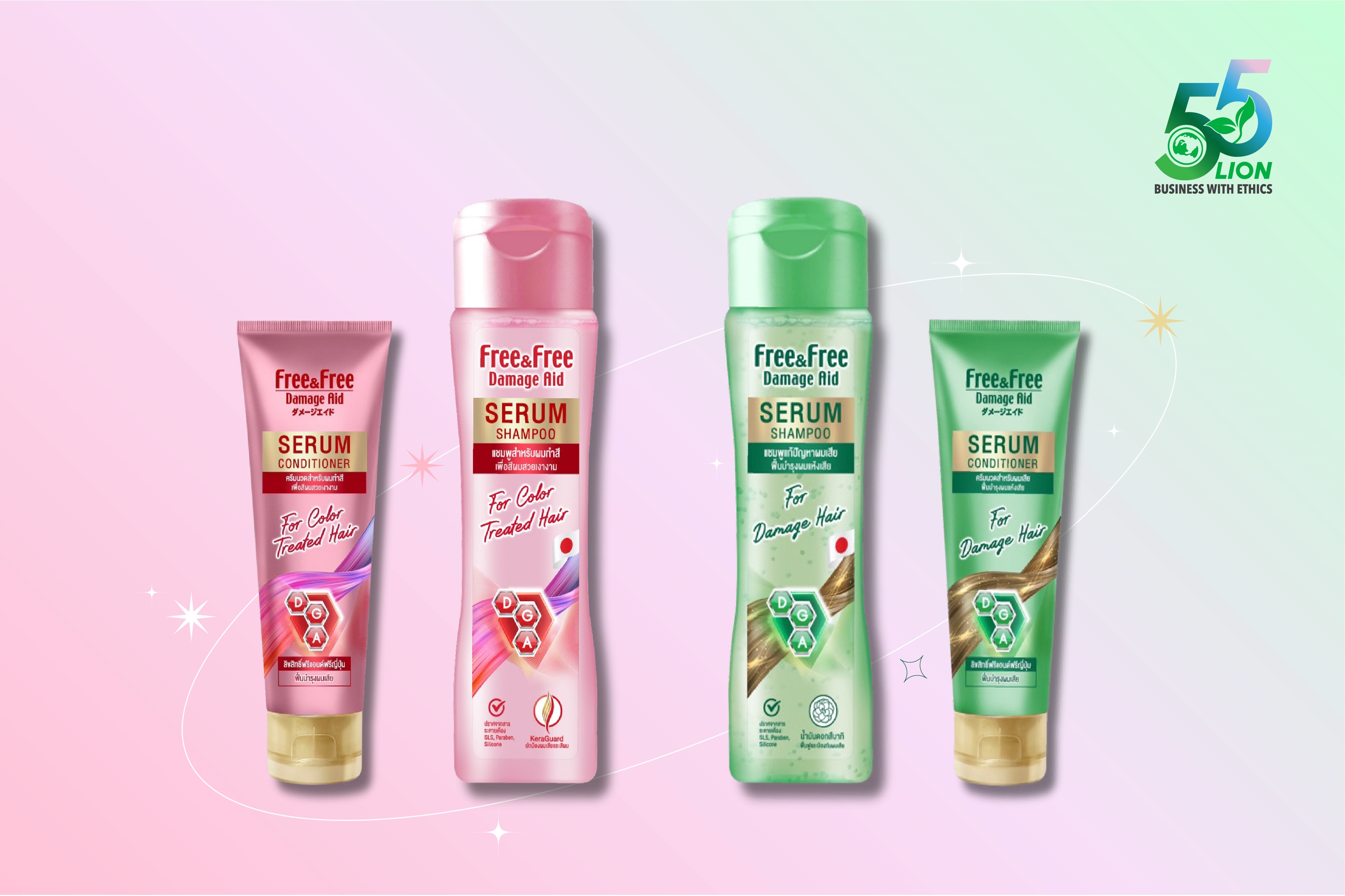 บริษัท ไลอ้อน (ประเทศไทย) จำกัด ผู้ผลิตและจำหน่ายสินค้าอุปโภคบริโภคเพื่อคนไทย มุ่งพัฒนาสินค้านวัตกรรม ตามแนวทางธุรกิจเพื่อนำความดีสู่สังคม และสร้างสุขภาวะที่ดีสู่ผู้บริโภค สังคม และสิ่งแวดล้อมมาอย่างต่อเนื่อง ตลอดระยะเวลา 55 ปี แนะนำไอเท็มใหม่ช่วงสงกรานต์ที่สายทำสีต้องไปตำ กับ “Free & Free Damage Aid” แชมพูสำหรับผมทำสี ลิขสิทธิ์ฟรีแอนด์ฟรีญี่ปุ่น นวัตกรรมฟื้นบำรุงเส้นผมแห้งเสีย DGA มาใน 2 สูตร 1.แชมพู และ ครีมนวดผม สูตรเซรั่ม เข้มข้น แพ็คเกจสีชมพู สำหรับผมทำสี ปกป้องผมเสียและสีผม ฟื้นบำรุงผมเสียจากการทำสีและเคมี เพื่อสีผมสวยเงางาม 2.แชมพู และ ครีมนวดผม สูตรเซรั่มเข้มข้น แพ็คเกจสีเขียว สำหรับผมเสีย ด้วยน้ำมันดอกสึบากิ ฟื้นบำรุงผมแห้งเสีย ปกป้องลดกลิ่นจากมลภาวะ ผมสวยไม่กลัวเสียแม้เจอความร้อน ให้คุณสนุกกับการทำสี ดูแลสีสมสวยแบบไม่ต้องกลัวผมเสีย