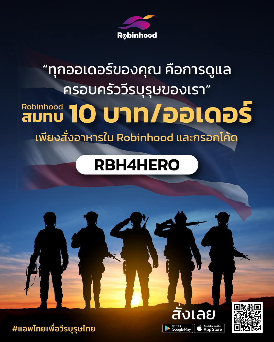 โรบินฮู้ด เดลิเวอรี จัดแคมเปญ “Robinhood for Hero” ร่วมส่งต่อกำลังใจสู่ครอบครัวทหารกล้าที่จากไป