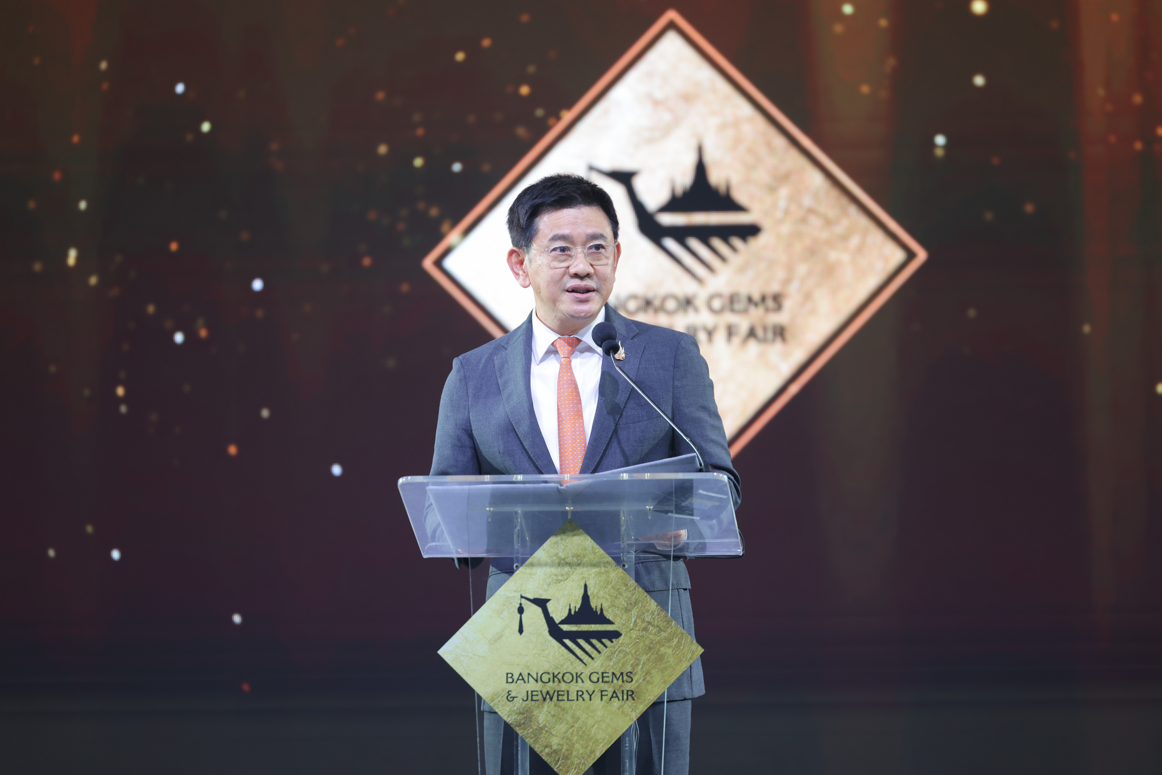 Bangkok Gems and Jewelry Fair ที่เติบโตมากว่า 4 ทศวรรษและจัดขึ้นเป็นครั้งที่ 72 ในวันที่ 9 – 13 กันยาน 2568 ถือเป็นหนึ่งในแผนงานสำคัญของกระทรวงพาณิชย์ และเป็นกลไกสำคัญในการขับเคลื่อนอุตสาหกรรม อัญมณีและเครื่องประดับของไทย ผมภูมิใจที่ในวันนี้ Bangkok Gems ได้รับการยอมรับจากผู้ซื้อทั่วโลกว่าเป็น 1 ใน 4 งานแสดงสินค้าจิวเวลรี่สำคัญของโลก และเป็นงานที่เป็นหมุดหมายของผู้ซื้อและผู้ที่อยู่ในอุตสาหกรรมจากนานาประเทศ “ต้องมา” ถือเป็นบทพิสูจน์ความเชื่อมั่นที่ผู้ซื้อทั่วโลกมีต่ออุตสาหกรรมจิวเวลรี่ไทยได้เป็นอย่างดี”