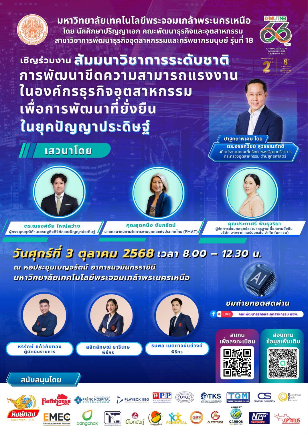 งานสัมมนา การพัฒนาขีดความสามารถแรงงานในองค์กรธุรกิจอุตสาหกรรม เพื่อการพัฒนาที่ยั่งยืนในยุคปัญญาประดิษฐ์