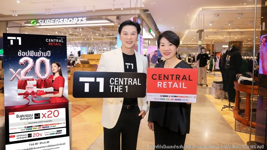 กรุงเทพฯ – 1 ธันวาคม 2568 : บัตรเครดิต เซ็นทรัล เดอะวัน นำโดย ชีวิน ปราชญานุพร (ซ้าย) กรรมการผู้จัดการ บริษัท เจเนอรัล คาร์ด เซอร์วิสเซส จำกัด ร่วมกับเซ็นทรัล รีเทล นำโดย ปิยวรรณ ลีละสมภพ (ขวา) รองกรรมการผู้จัดการใหญ่ฝ่ายการตลาด บริษัท เซ็นทรัล รีเทล คอร์ปอเรชั่น จำกัด (มหาชน) ชวนสมาชิกบัตรฯช้อปฟินข้ามปี มอบสิทธิพิเศษสุดคุ้มทั้งช้อปออนไลน์ และที่ร้านค้าชั้นนำในเครือเซ็นทรัล รีเทล รับคะแนนเดอะวันพิเศษสูงสุด 20 เท่า ตั้งแต่ 1 ธันวาคม 2568 - 31 มกราคม 2569 เมื่อใช้จ่ายสะสมต่อเดือนครบตามเงื่อนไข ขั้นต่ำ 3 ร้านค้าขึ้นไปที่หน้าร้านและช้อปออนไลน์ที่ห้างสรรพสินค้าเซ็นทรัล, ห้างสรรพสินค้าโรบินสัน, มูจิ, ซูเปอร์สปอร์ตและร้านค้าในเครือ CRC Sports, ร้านค้าในเครือเซ็นทรัล มาร์เก็ตติ้ง กรุ๊ป (CMG), ท็อปส์ ฟู้ด ฮอลล์, ท็อปส์, ท็อปส์ ไฟน์ ฟู้ด, ท็อปส์ เดลี่, ท็อปส์ ออนไลน์, มัทสึคิโยะ, โก โฮลเซลล์, ไทวัสดุ, บีเอ็นบี โฮม, ออโต้วัน, โก! ว้าว, เพาเวอร์บาย, โก! เพาเวอร์, ออฟฟิศเมท และบีทูเอส (ลงทะเบียนทุกวันที่ 1 ของทุกเดือน เวลา 10.00 น. ผ่านแอป UCHOOSE เพื่อรับคะแนนเดอะวันพิเศษ)