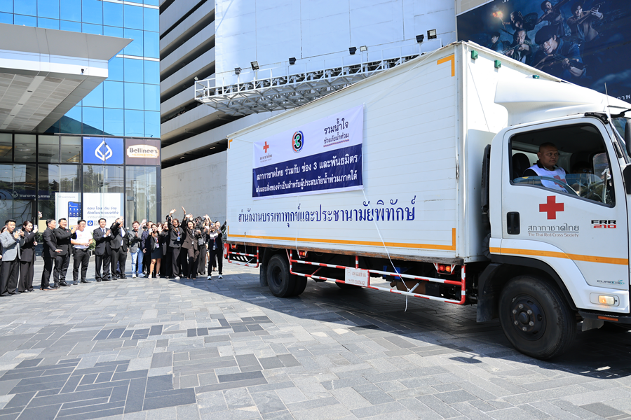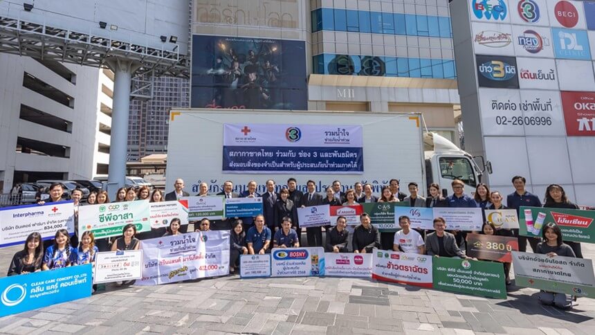 ได้ร่วมกันบริจาค ทั้งเงินสด และสิ่งของจำเป็นเร่งด่วนโดยตรงไปยังสภากาชาดไทยเป็นจำนวนมาก โดยบริษัทห้างร้านที่เป็นลูกค้าของช่อง 3 ได้เดินทางมาร่วมถ่ายภาพมอบสิ่งของและเงินสดที่ อาคารมาลีนนท์ ไทยทีวีสีช่อง 3 โดยมี นายกฤษฎา บุญราช ผู้ช่วยเลขาธิการสภากาชาดไทย และผู้อำนวยการสำนักงานบริหารกิจการเหล่ากาชาด พร้อมด้วยคณะผู้บริหารสภากาชาดไทย เป็นผู้รับมอบ และคุณวิบูลย์ ลีรัตนขจร รักษาการ กรรมการผู้อำนวยการสายธุรกิจโทรทัศน์ พร้อมด้วยคณะผู้บริหาร และผู้ประกาศข่าวให้การต้อนรับ