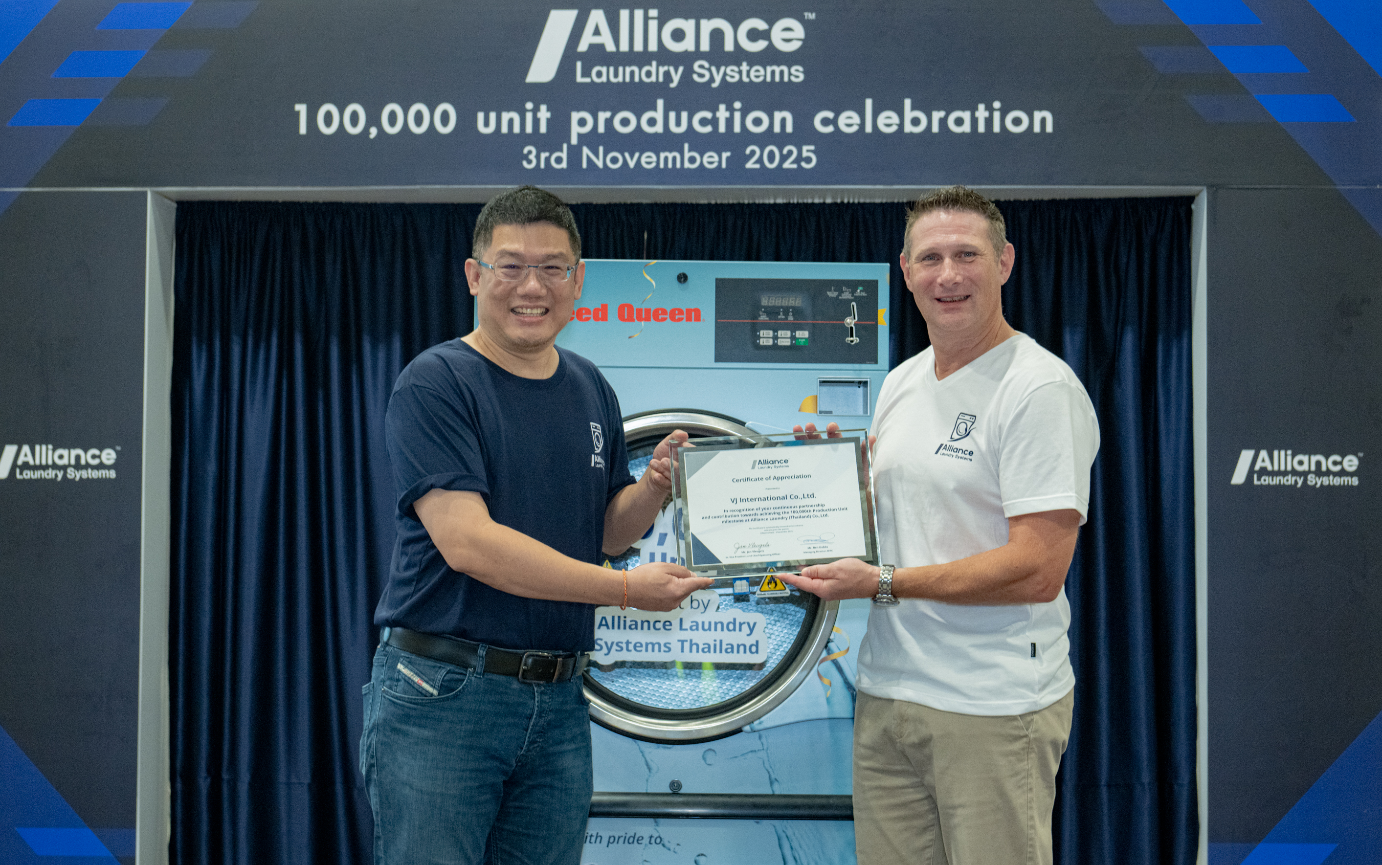 อัลไลแอนซ์ ลอนดรี้ ซิสเต็มส์ หรือ ALS ผู้นำด้านการผลิตเครื่องซักอบผ้าเชิงพาณิชย์ที่ใหญ่ที่สุดในโลก ฉลองความสำเร็จของโรงงานในไทยด้วยการผลิตครบ 100,000 เครื่อง ภายในเวลาเพียง 6 ปี ก้าวสู่การเป็นต้นแบบความสำเร็จและศูนย์กลางการผลิต-ส่งออกในภูมิภาคเอเชียแปซิฟิก เดินหน้าเพิ่มกำลังการผลิตรองรับการกลุ่มโรงพยาบาล โรงแรม และร้านสะดวกซัก ที่โตต่อเนื่อง