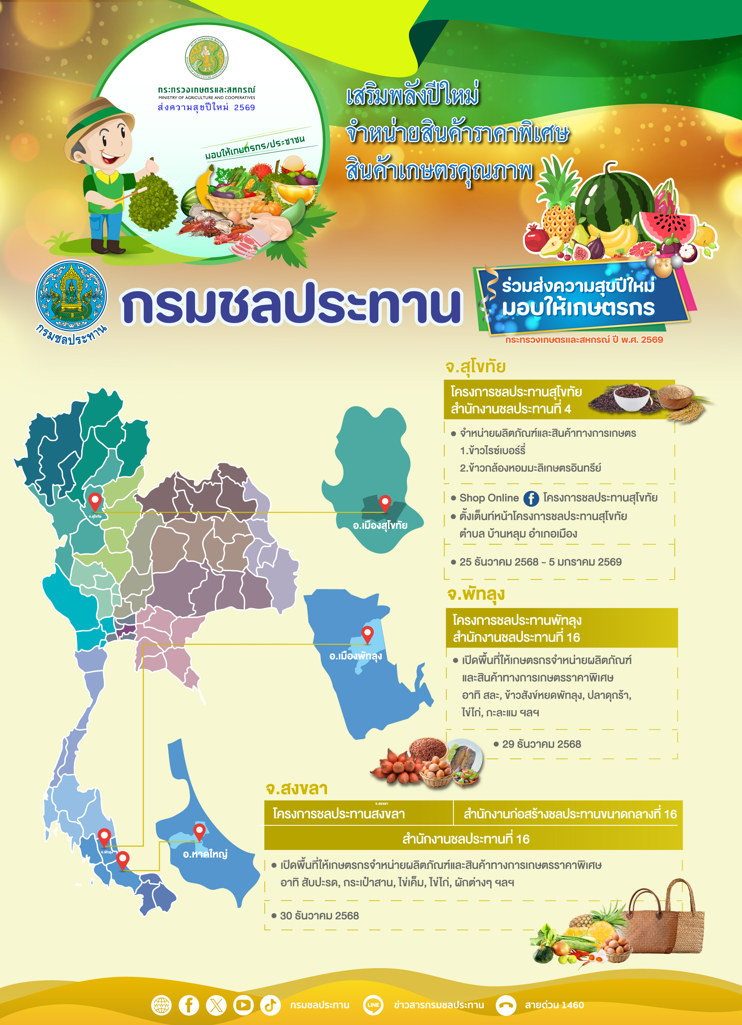 พร้อมกันนี้ ยังมีกิจกรรม “เสริมพลังปีใหม่ จำหน่ายสินค้าราคาพิเศษ สินค้าเกษตรคุณภาพ” เปิดพื้นที่ให้เกษตรกรนำสินค้าทางการเกษตรที่มีคุณภาพมาจำหน่ายโดยตรงแก่ประชาชน เช่น ข้าวอินทรีย์ ผลไม้ ผักสด และผลิตภัณฑ์แปรรูปจากชุมชน เพื่อสร้างรายได้และกระจายรายได้สู่ท้องถิ่น