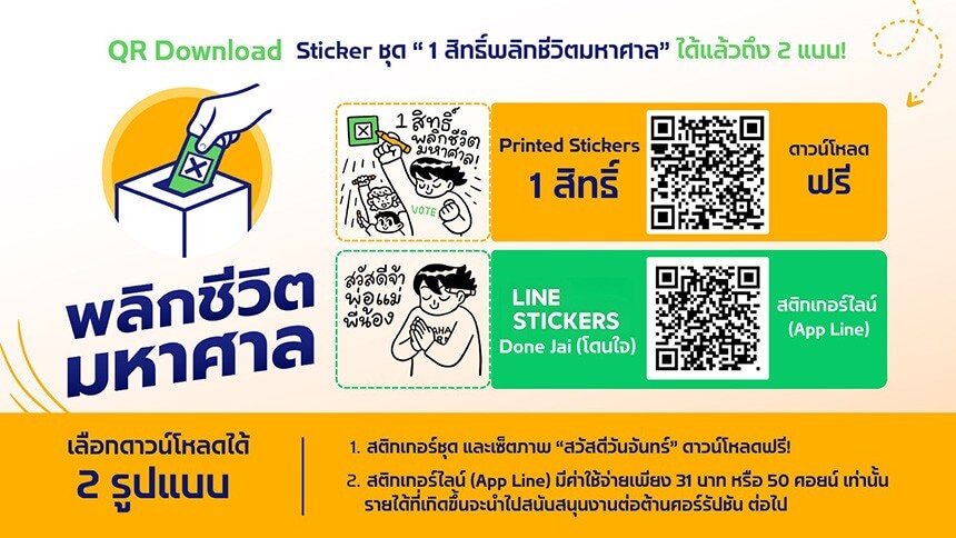 ด้วยภาคีเครือข่ายพลิกชีวิตมหาศาลแต่ละหน่วยงานต่างทำงานใกล้ชิดกับภาคประชาชน ข้อความต่างๆ ของสติกเกอร์ชุด 1 สิทธิ์ฯ นี้ จึงนับได้ว่าเป็นเครื่องมือสะท้อนเสียงประชาชนที่ง่ายต่อการเข้าถึงกลุ่มเป้าหมายหลากหลายวัย ทั้งคนรุ่นใหม่ที่ชอบตัวคาแรกเตอร์ และคนรุ่นใหญ่ที่ชอบส่งสติกเกอร์เซตสวัสดีวันจันทร์ ทางภาคีฯจัดไว้พร้อม สามารถดาวน์โหลดฟรีได้ที่ https://drive.google.com/drive/folders/1nZdm89AvjEPF6ruyvPNfF_epgZLThIa-