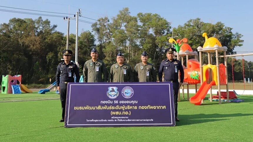 กองบิน 56 จัดพิธีรับมอบสนามเด็กเล่นและศูนย์พัฒนากีฬากอล์ฟ จากชมรม พสบ.ทอ. ภายหลังฟื้นฟูเหตุอุทกภัยอ.หาดใหญ่