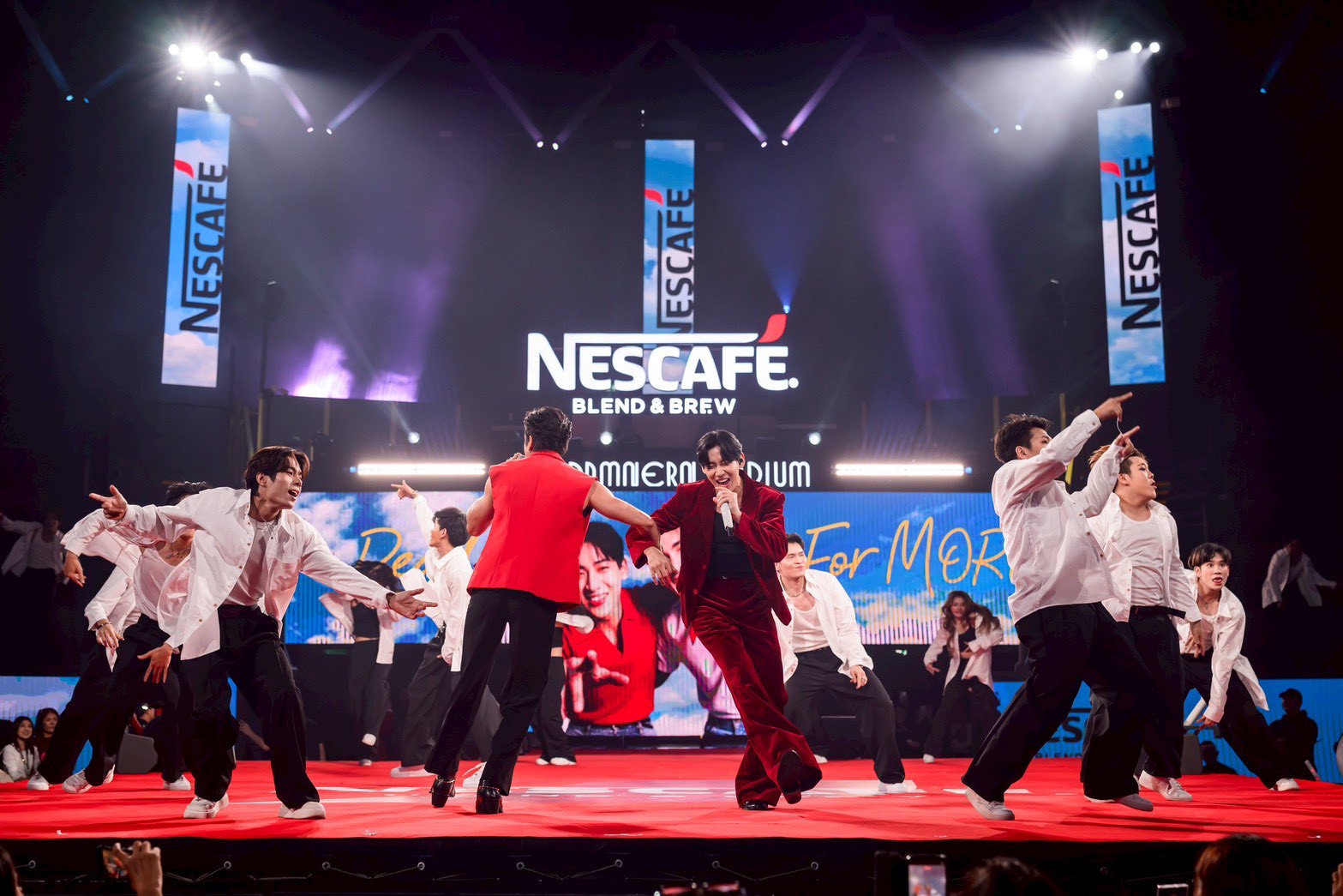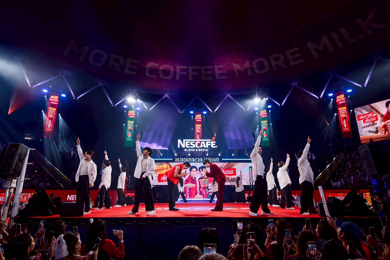 งาน “เนสกาแฟ เบลนด์ แอนด์ บรู เมค ดิส โมเมนต์ มอร์” เปิดฉากอย่างยิ่งใหญ่ด้วยการเปิดตัวของ ดูโอ แบรนด์แอมบาสเดอร์ ณเดชน์ และแบมแบม ท่ามกลางแสง สี เสียง และจอ Immersive 360 องศา สุดอลังการ ก่อนที่ทั้งคู่จะจับไมค์โชว์เพลง “ไปอีก (Ready For MORE)” เป็นครั้งแรก เรียกเสียงกรี๊ดจากแฟนๆ กว่า 1,200 คนดังกระหึ่มทั่วราชดำเนิน สเตเดียม