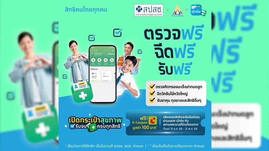 “กระเป๋าสุขภาพ” บนแอปฯ เป๋าตัง ได้รวมสิทธิสุขภาพไว้ในที่เดียว ช่วยให้คนไทยทุกคนสามารถเช็คสิทธิได้ง่ายๆ สามารถเข้าไปเช็คสิทธิ จองสิทธิตรวจสุขภาพฟรีไม่มีค่าใช้จ่าย รวมถึงทำการนัดหมายได้สะดวกมากยิ่งขึ้น ซึ่งสิทธิเหล่านี้จะมีตั้งแต่สุขภาพขั้นพื้นฐาน อาทิ ตรวจคัดกรองมะเร็งลำไส้ใหญ่ มะเร็งปากมดลูก รวมถึงการรับสิทธิฟรีเช่น การฉีดวัคซีนไข้หวัดใหญ่ รับยาคุม ถุงยางอนามัย และสิทธิอื่นๆ ได้ฟรี