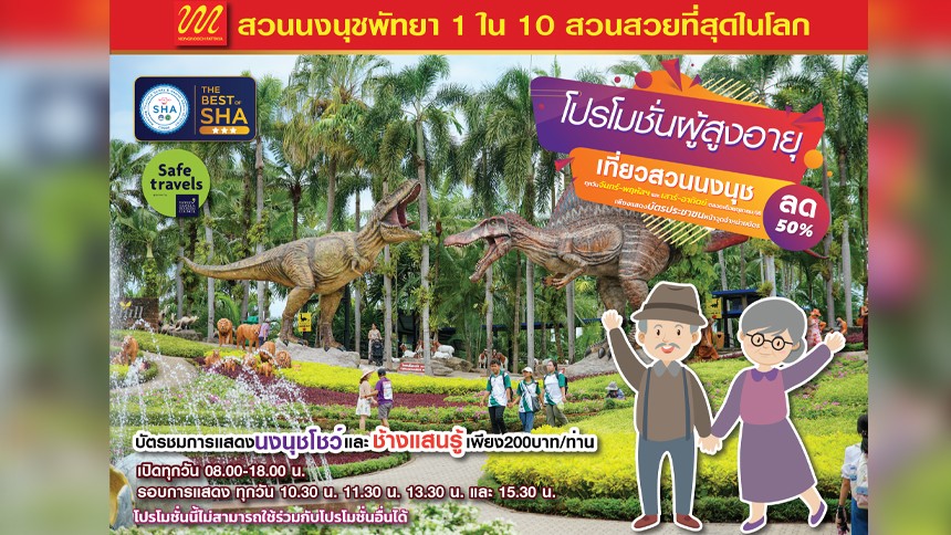 'สวนนงนุช พัทยา' จัดโปรโมชั่นสุดพิเศษ ผู้สูงอายุ 60 ปีขึ้นไป ซื้อบัตรผ่านประตูลด 50% ตลอดเดือน ต.ค.66