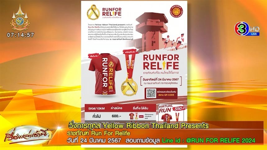 งานจัดในวันอาทิตย์ที่ 24 มีนาคม 2567 ณ จุด Start กรมราชทัณฑ์ จังหวัดนนทบุรี รายได้นำเข้ากองทุนสงเคราะห์ผู้พ้นโทษ สอบถามข้อมูล Line id : @RUN FOR RELIFE 2024