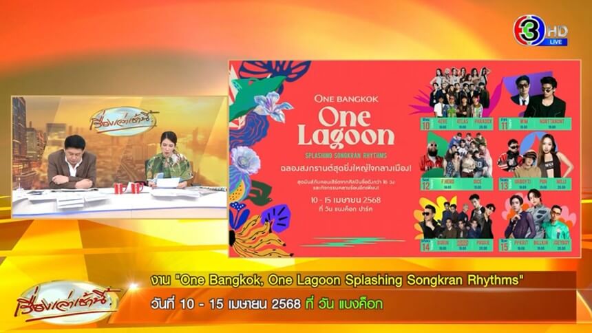 งาน 'One Bangkok, One Lagoon Splashing Songkran Rhythms' วันที่ 10-15 เม.ย.68 ที่ วัน แบงค็อก