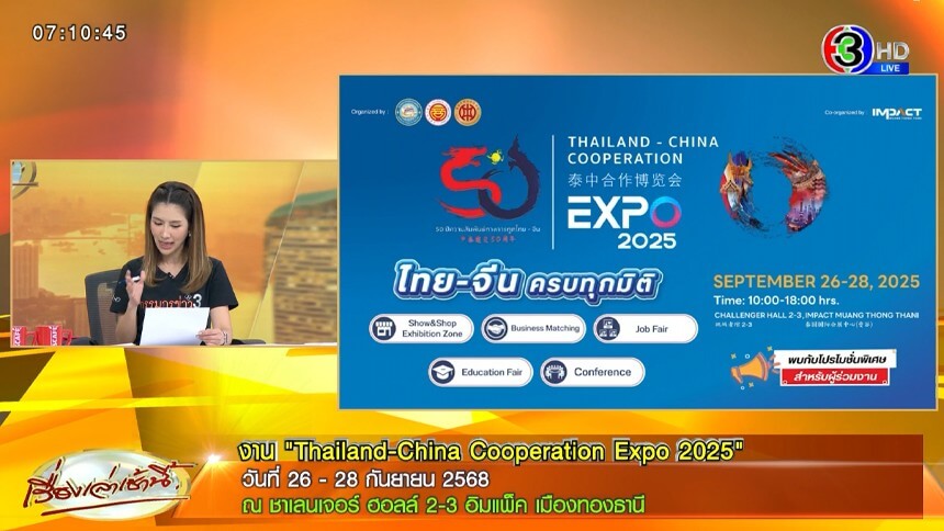 งาน 'Thailand-China Cooperation Expo 2025' ที่ชาเลนเจอร์ ฮอลล์ 2-3 อิมแพ็ค เมืองทองธานี 26-28 ก.ย.68