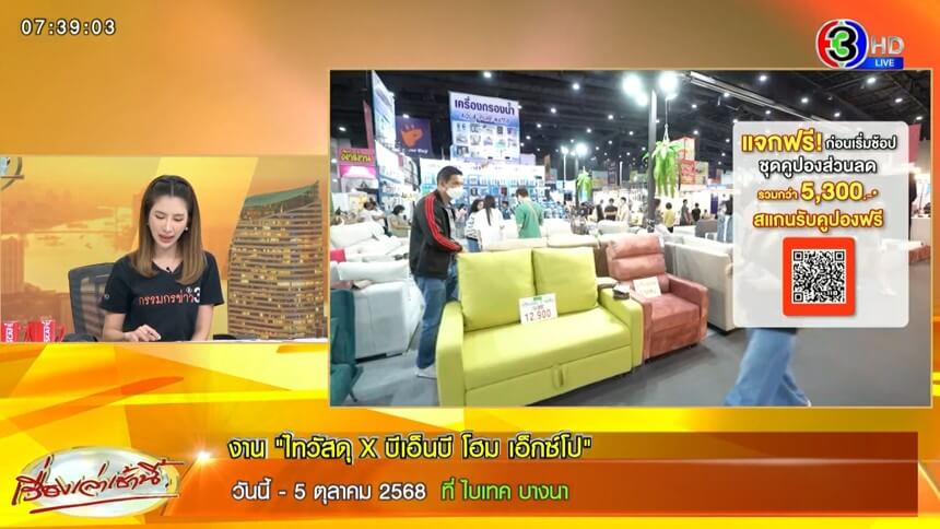 งานใหญ่โปรแรงเพื่อบ้าน 'ไทวัสดุ x บีเอ็นบี โฮม เอ็กซ์โป' มหกรรมสินค้า ที่รวบรวมสินค้า วัสดุก่อสร้าง ห้องน้ำ ห้องครัว เฟอร์นิเจอร์ ที่นอน รวมทั้งเครื่องใช้ไฟฟ้าจาก Power Buy รวมสินค้ากว่า 600 แบรนด์ดัง มาที่เดียวได้ครบถูกใจ พร้อมจัดเต็มโปรโมชั่น ตั้งแต่วันนี้ - 5 ต.ค.68 ที่ไบเทค บางนา