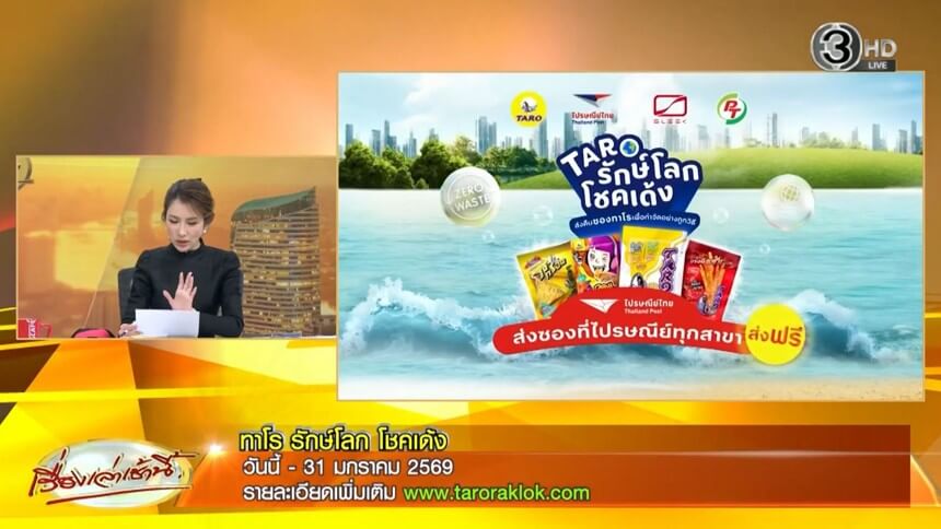 ทาโร ร่วมกับ ไปรษณีย์ไทย,สลีค อีวี และ พีทีจี จัดแคมเปญใหม่ “ทาโร รักษ์โลก โชคเด้ง” ชวนคนไทยส่งคืนซองเปล่าทาโร เพื่อนำไปแปรสภาพเป็นเชื้อเพลิงขยะ ช่วยลดปัญหาภูเขาขยะ สิ่งแวดล้อม ลดโลกร้อนได้อย่างยั่งยืน