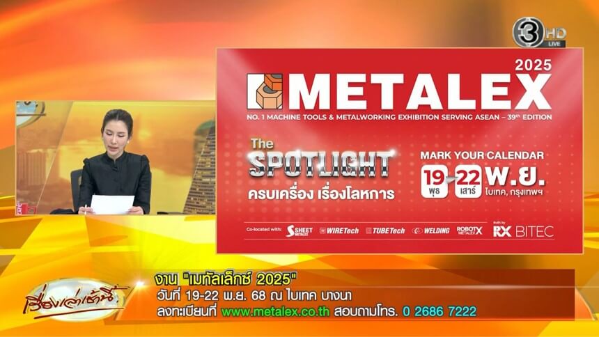 งาน 'METALEX 2025' มหกรรมเทคโนโลยีเครื่องจักรกลและโลหะการ อันดับหนึ่งของอาเซียน กลับมาแล้วอย่างยิ่งใหญ่ จัดขึ้นระหว่างวันที่ 19-22 พฤศจิกายน 2568 ณ ไบเทค บางนา