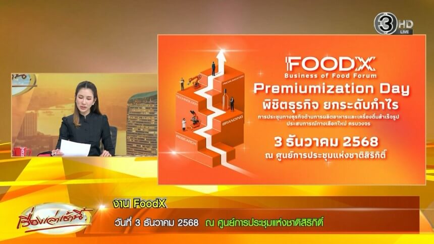 งาน FoodX Business of Food Forum - Premiumization Day การประชุมทางธุรกิจ ด้านการผลิตอาหารและเครื่องดื่มสำเร็จรูป จัดขึ้นวันที่ 3 ธันวาคม 2568 ณ ศูนย์การประชุมแห่งชาติสิริกิติ์ ลงทะเบียน และติดตามรายละเอียดเพิ่มเติม : www.foodx.co.th