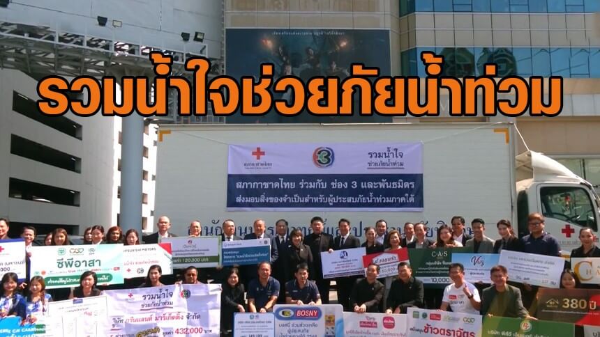 'ช่อง 3' เป็นสื่อกลาง 'พันธมิตรภาคธุรกิจ' ส่งความช่วยเหลือผู้ประสบภัยน้ำท่วม ผ่านสภากาชาดไทย
