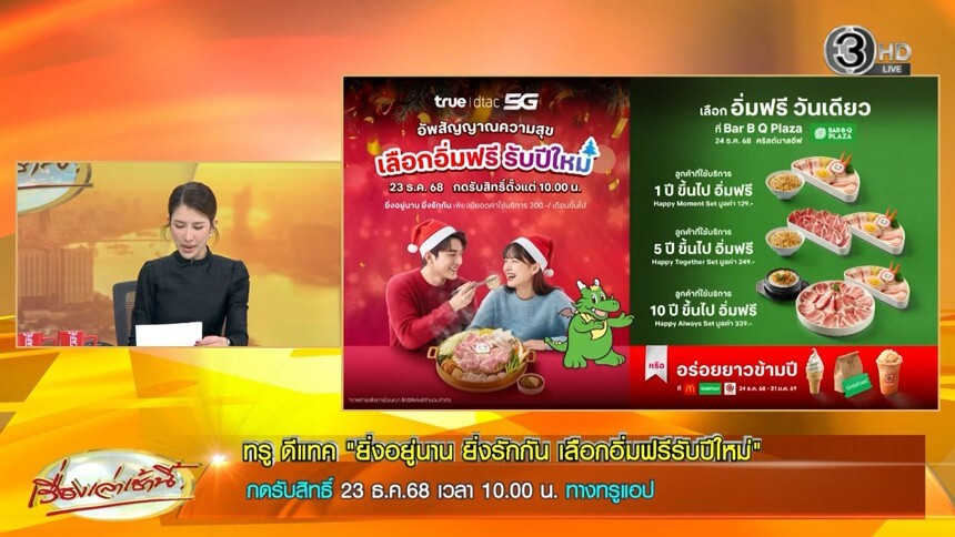 'ทรู ดีแทค' จัดแคมเปญ ยิ่งอยู่นาน ยิ่งรักกัน เลือกอิ่มฟรีรับปีใหม่ คริสต์มาสอีฟ
