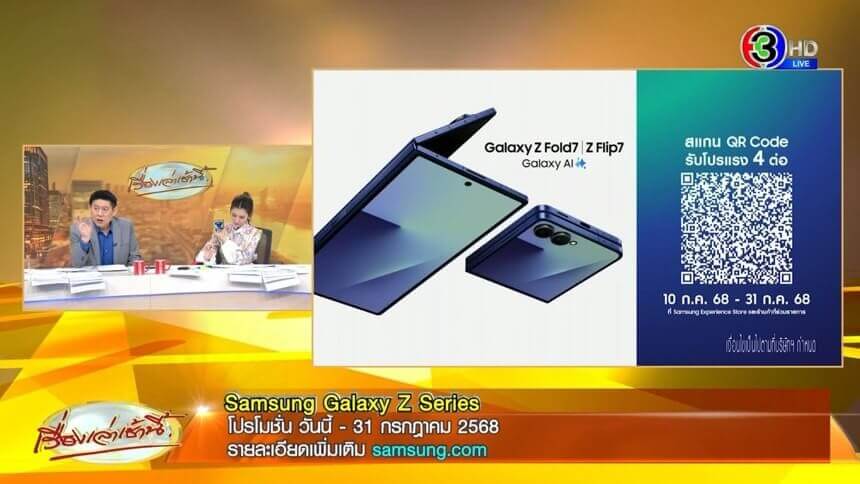 ผู้โชคดีเรื่องเล่าเช้านี้ วันพฤหัสบดีที่ 10 กรกฎาคม 2568 ได้รับโทรศัพท์ Samsung Galaxy Z Flip 7 256 G สี Blue Shadow